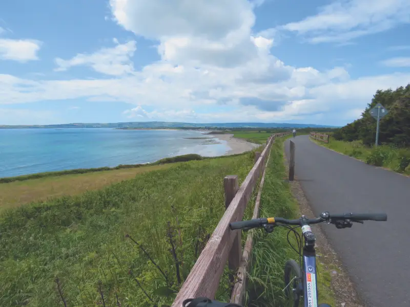 Langs het eerste stuk van de route ligt nog daadwerkelijk de voormalige spoorlijn die tussen 1878 en 1967 operationeel was. Het pad wordt omgeven door een gigantische hoeveelheid margrieten, vrolijk heen en weer deinend in de wind. Terwijl de rivier de Suir aan mijn rechterhand ligt, fiets ik langs het WIT, het Waterford Institute of Technology. Op dit eerste stuk kom ik onder meer over een oude brug en langs Kilmeaden Castle. Ook het oude station van Kilmeaden bestaat nog steeds, al is het inmiddels niet meer in gebruik. Op het perron zit in een oud treinstel een koffietentje gevestigd; een leuke plek om een pauze in te lassen.